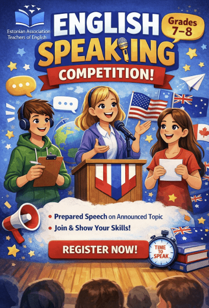 The Estonian Association of Teachers of English invites students from grades 7 and 8 to participate in a speaking competition. EATE also invites teachers